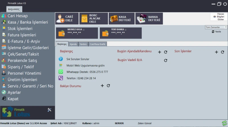 Cari hesap programı müşterileriniz ve satıcı firmalarınızn borç ve alacak takibinizi yapabilmeniz için geliştirilmiş son derece kullanışlı, pratik bir programdır. Bu programla müşterilerinizin, satıcı firmalarınızın bilgilerini arama, filtreleme seçenekleri ile kolaylıkla ulaşabilirsiniz. cari hesapları kısıtlayabilir borç alacak limitleri belirleyebilirsin.